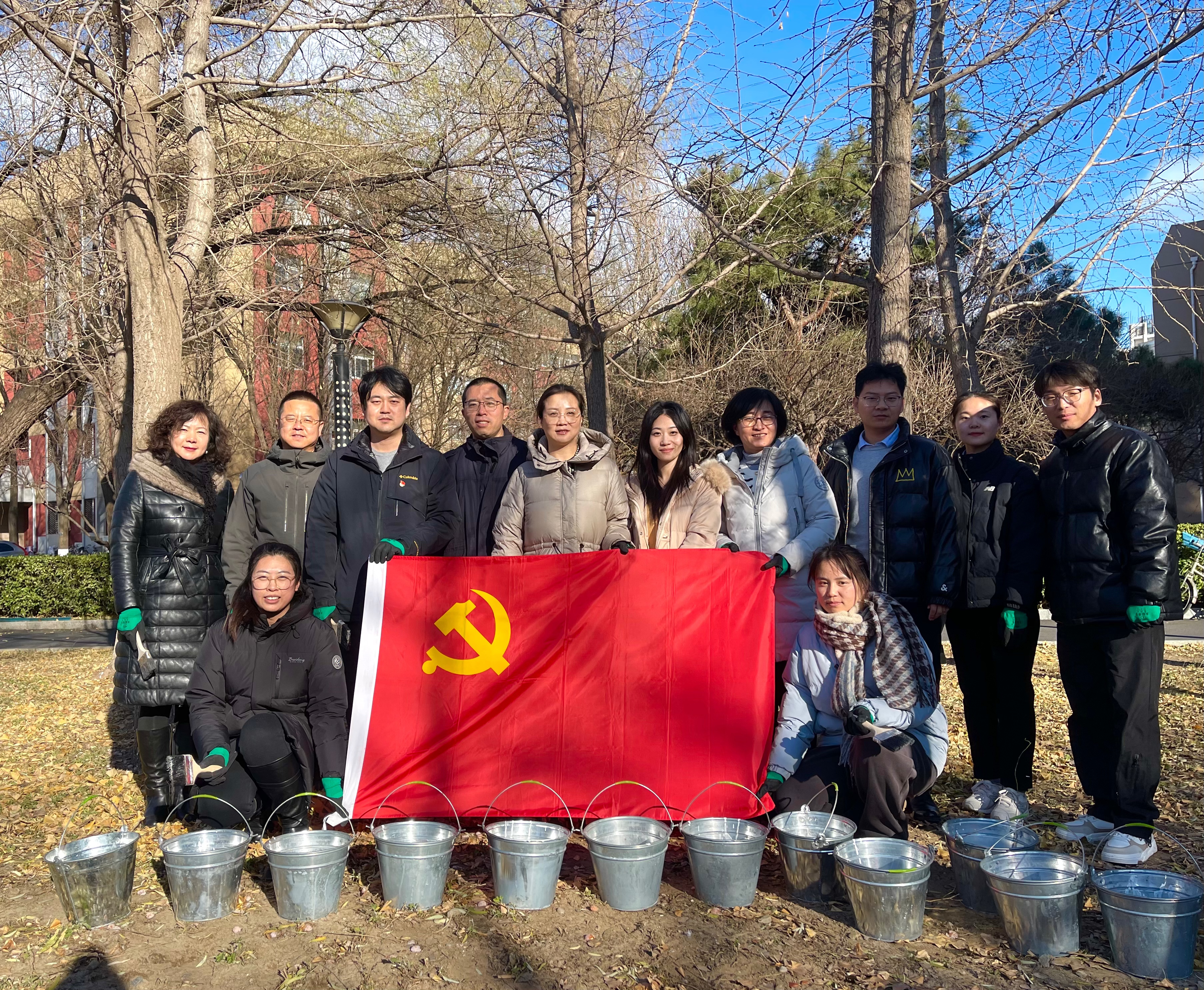 携手护绿,为校园树木披上“防寒衣”——后勤党委机关党支部开展主题党日活动